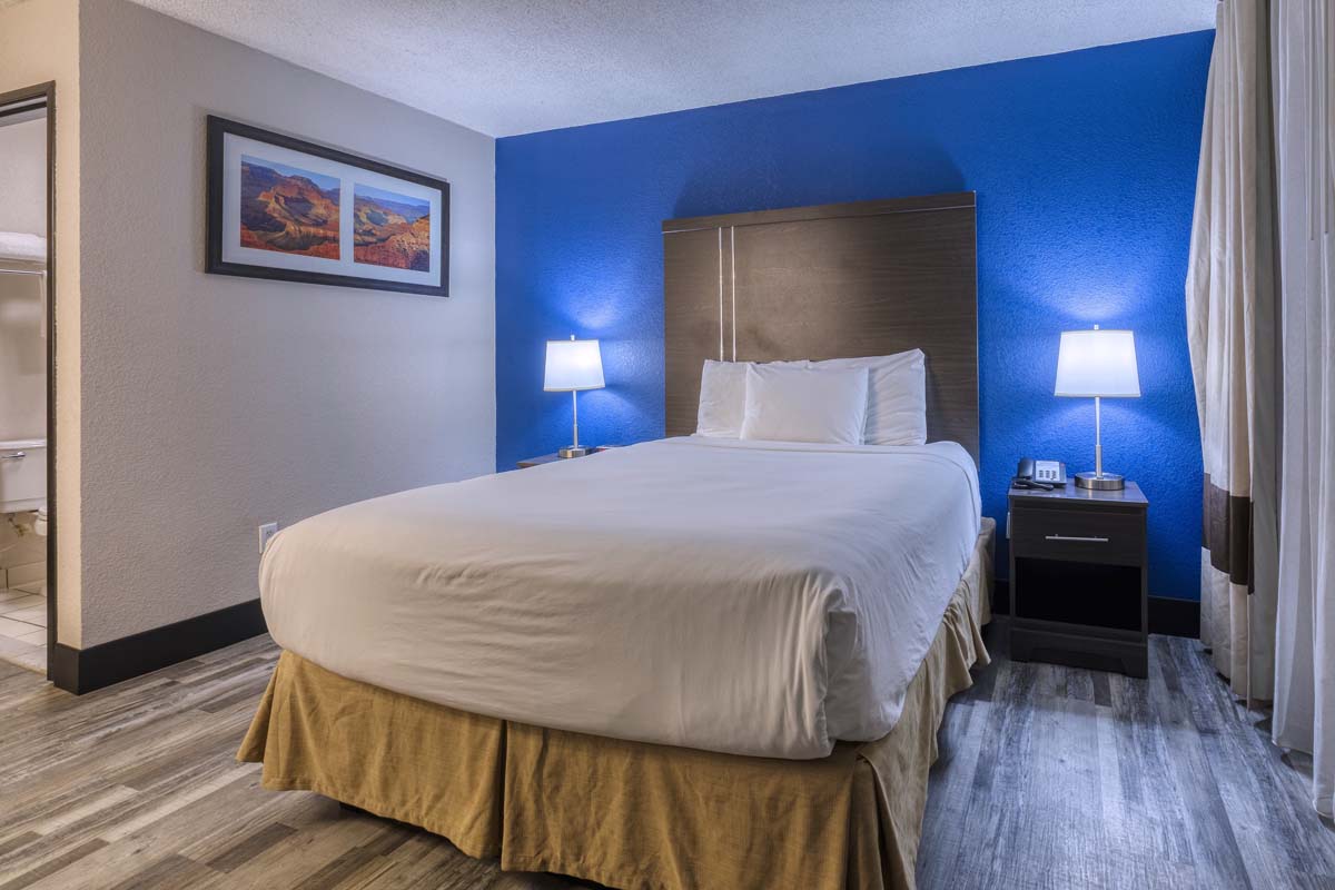 Imagine a serene escape in this inviting non-smoking suite on the second floor, featuring a plush queen bed designed for ultimate comfort.